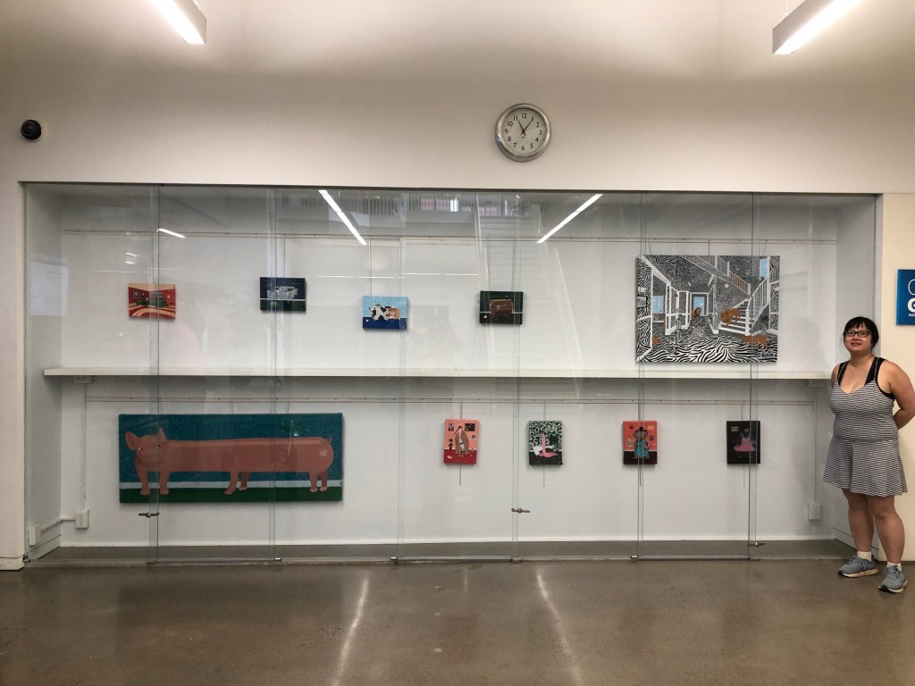 I’m showing Art this summer through July, August and September! This is the first exhibit since before the pandemic and having 2 babies. I have a focus on new work on the top portion, Animal Furniture, and a few pieces from my Ugly Animals In Cute Outfits series, bottom right. It’s BBQ summer weather also so I brought in an old classic, my Juicy Jumbo to celebrate. I’m told it will be up for Hamilton’s big Supercrawl too! What an honour 🔆