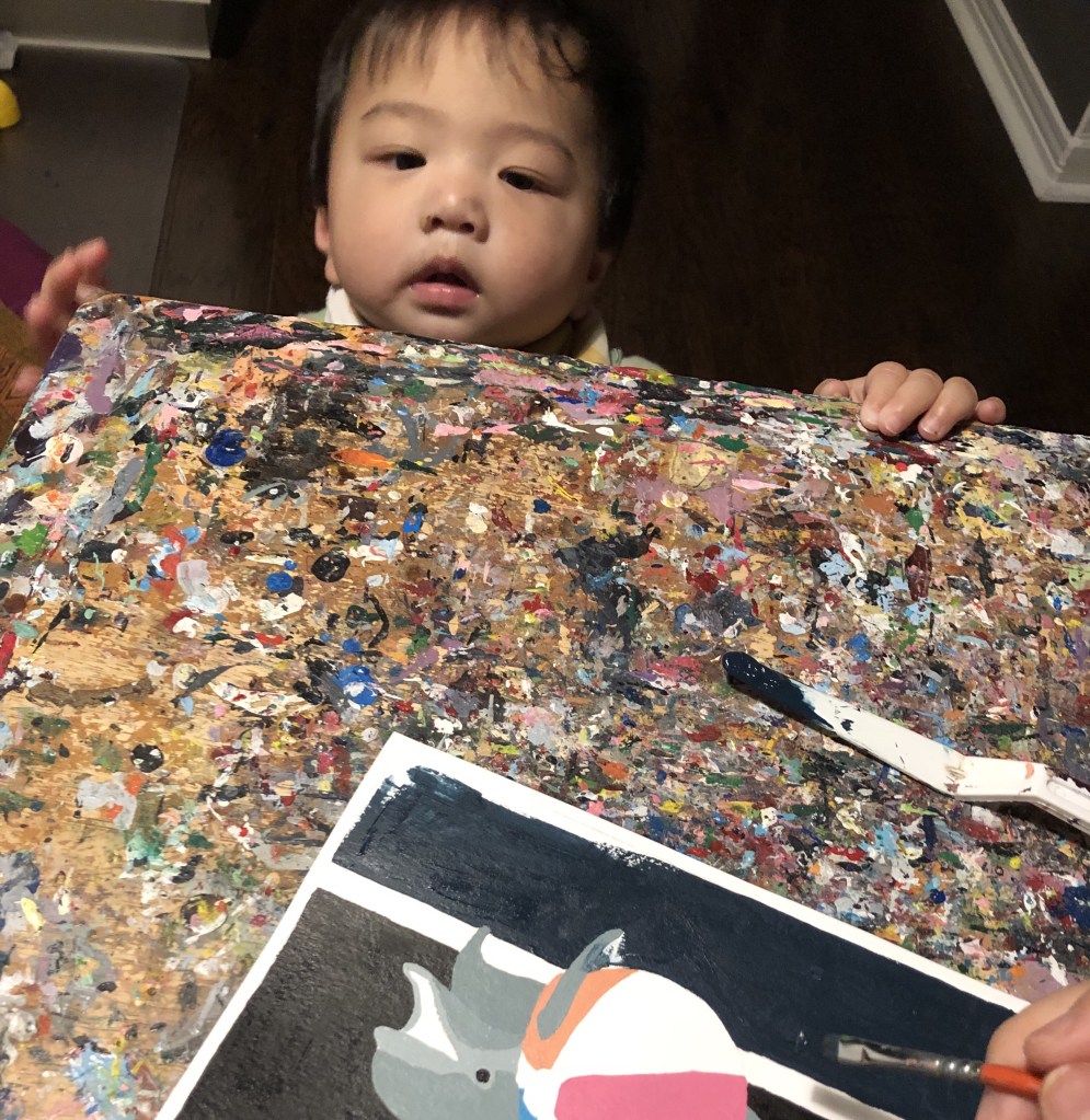 It’s been hectic around here. Been starting the day at 4am, he likes to watch me paint.