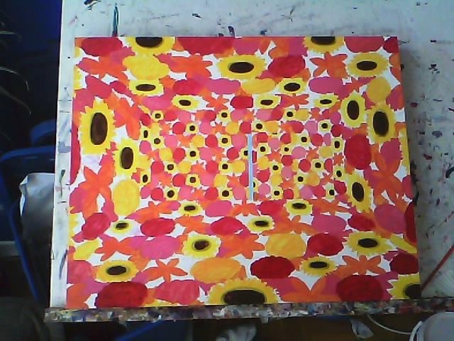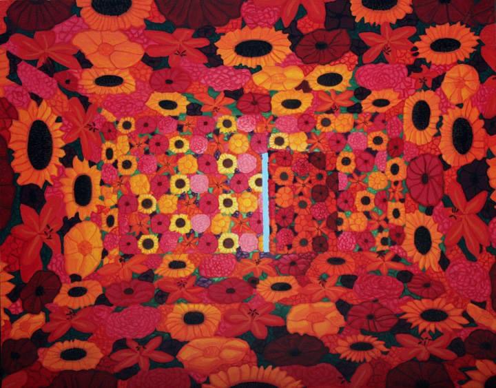 Before and after shots of my red flower room with an open door. Acrylic on canvas 20 x 16 inches, an older work painted in 2015. It went onto be the cover art of a Toronto based waltz and polka band @hypnosis.negative and even later, I used it as a base for a later painting. I love how art takes on new meaning in the world and even morphs into new ideas for more paintings!! #surrealism #art #flowers
