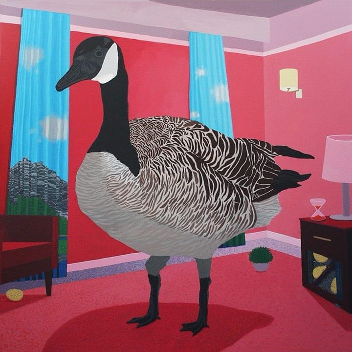 I’ve had a client pay top dolla market price for a painting on condition I make my signature more visible, bottom right. She was a serious collector, the type to include her collections in museums. Besides that, I love embedding, almost hiding my signature in the image. People love looking for it, they think it’s clever. But it’s frustrating for new collectors who want to know who painted the piece to find more from the same artist. I very clearly also sign the back. #surrealism #canadagoose #artjournal