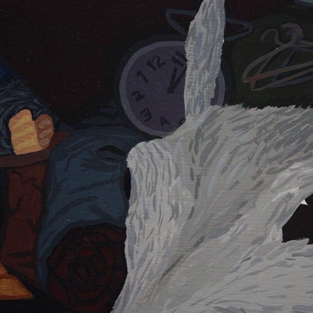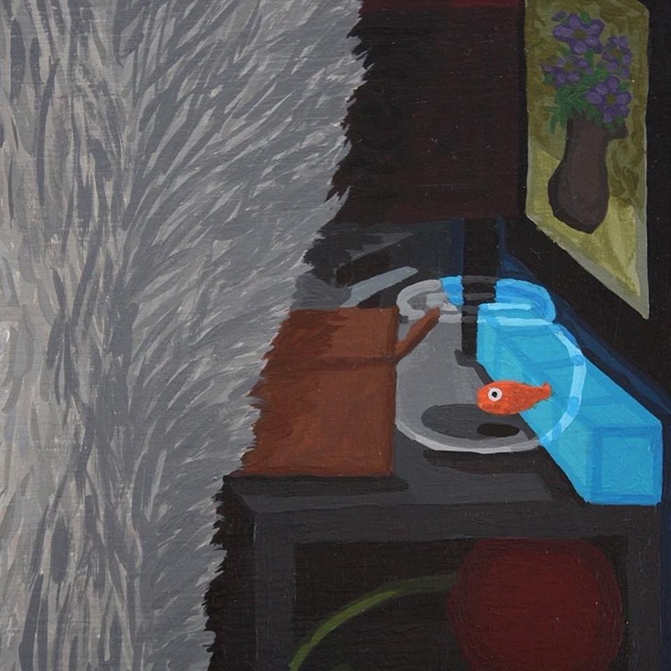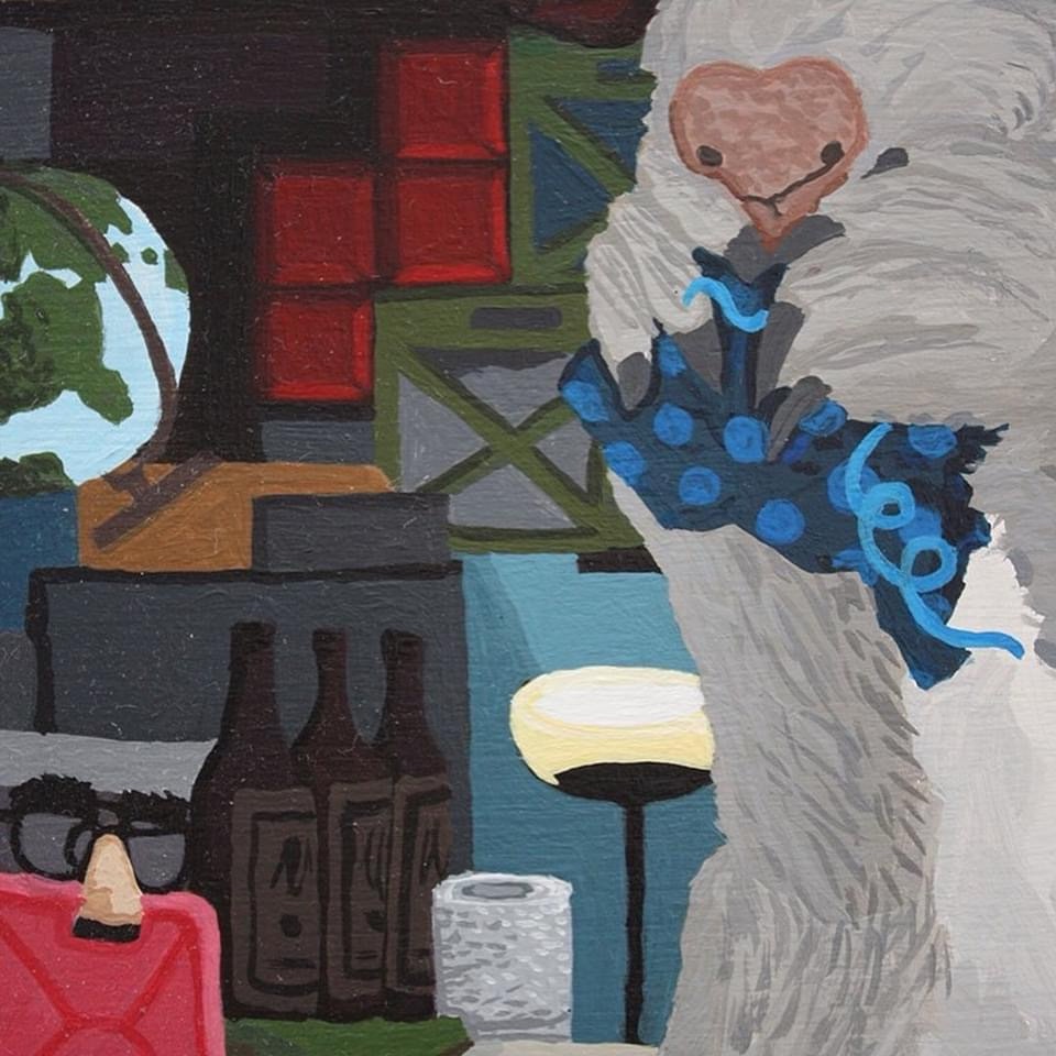 Hoarding Squirrel acrylic on canvas 12 x 12 x 1.5 inches i painted this a long time ago and hid a bunch of stuff in it! Can you find my signature, a gold fish, and a tetris piece? #surrealism #squirrel #inspirational