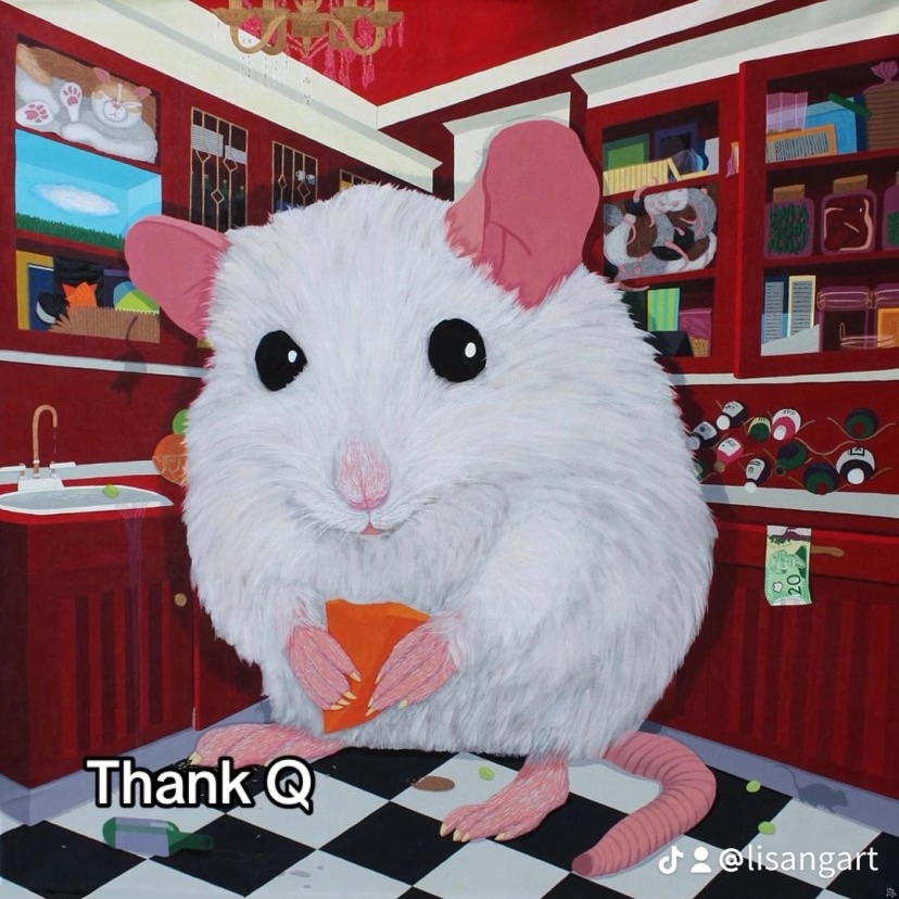 Thank Q to whoever ordered a print I appreciate the support, it means a lot. This is a painting I did of a thriving mouse in a well stocked pantry during pandemic year 2020. He is thriving as I’ve stashed his enemies away, making babies too. Remember all the pandemic babies? 😂 #pandemicbabies