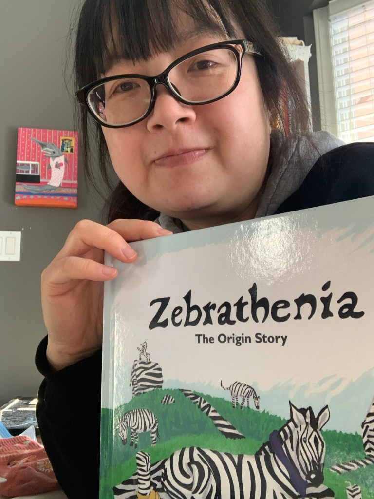 She supported our book and passed along a message: she still has this illustrated card I gave her. I believe it was this one, the painting that birthed the idea for my upcoming Zebrathenia picture book ! I painted it in around the time I was under her mentorship, actually. Time is circular.