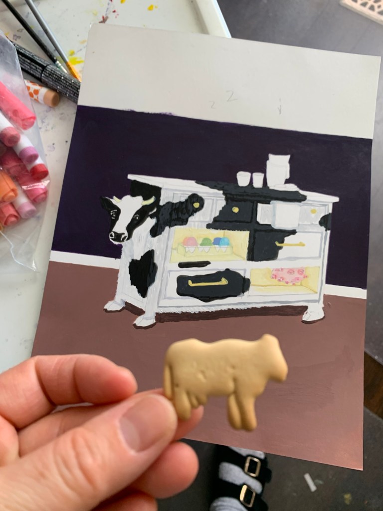 Cow Fridge acrylic on paper, 2026 illustrated for Polar Chair’s Magic Workshop