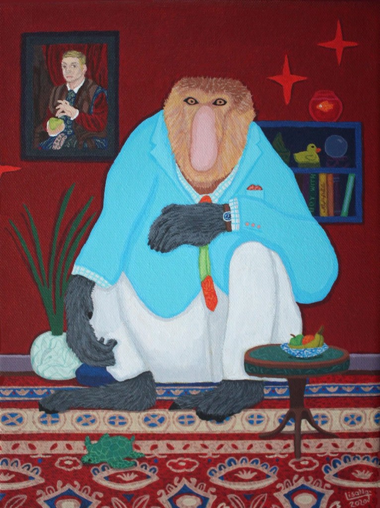 Probocis Monkey In A Suit acrylic on canvas 9 x 12 x 1.5 inches SOLD