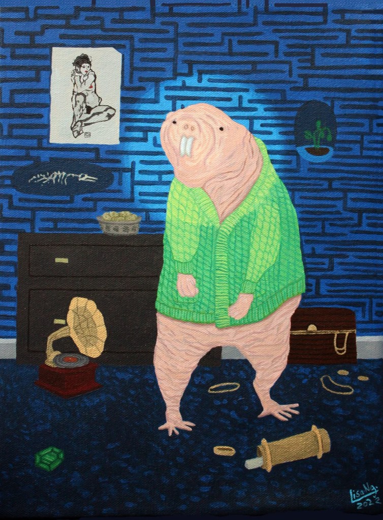 Naked Mole Rat In A Cardigan acrylic on canvas9 x 12 x 1.5 inches $400 CAD