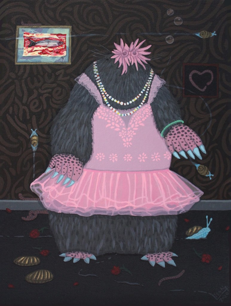 Star Nosed Mole In A Tutu acrylic on canvas 9 x 12 x 1.5 inches $400 CAD