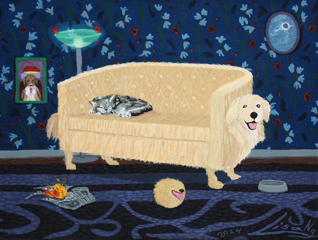 Crocodile Couch acrylic on canvas 12 x 9 x 1.5 inches 2024 $400 CAD