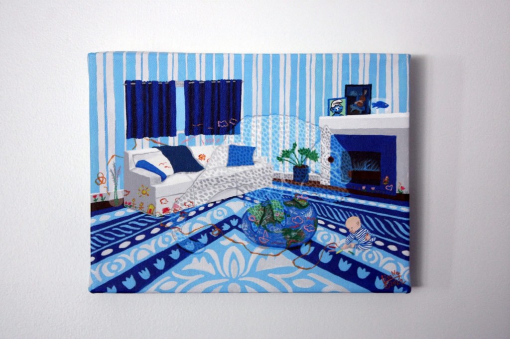 Indoor Chameleon In Blue acrylic on canvas 12 x 9 x 1.5 inches $400 CAD