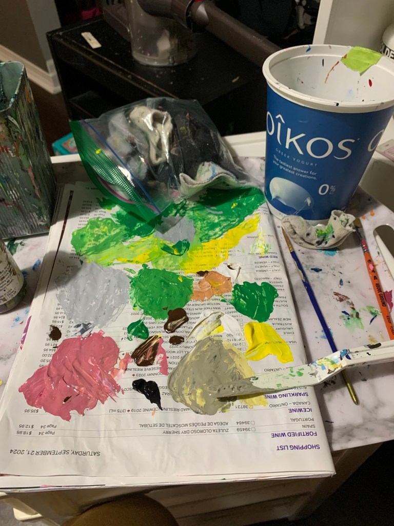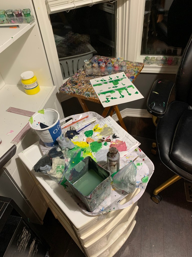 Our pile of clutter was always in flux, thinned out perhaps every once a year to make room for the seasons’s latest crop of paintings, or pandemic nursing supplies, or the bed bug fiascos of 2006 and 2013, when we toss most of it out. It was a pile of crap that reflected the current moment of our lives. It marked the pivotal happy time in our lives as well, my wedding dress entered the pile in 2016, uncomfortable dress shoes for those important occasions, a degree in fine art- which I later sold for $10 CAD, then a degree in nursing, now irrelevant because the university decided to change it’s name. The corner even marked major political shifts of the current day.